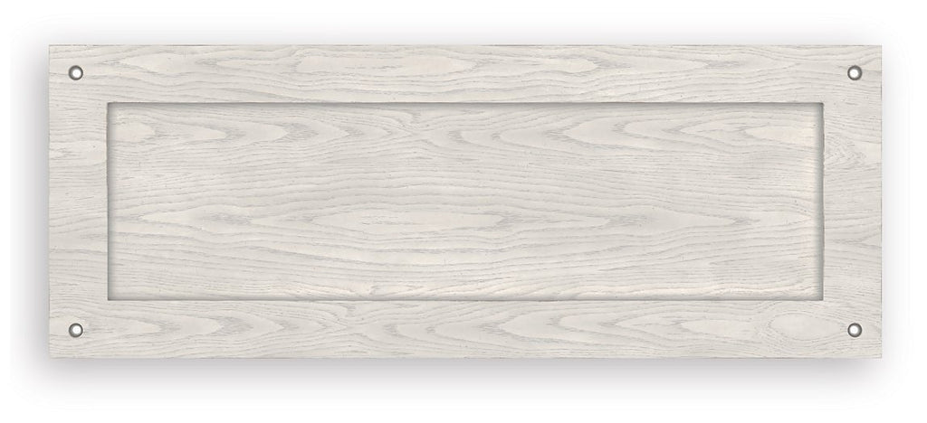 - Antiqued white finish with wood grain texture