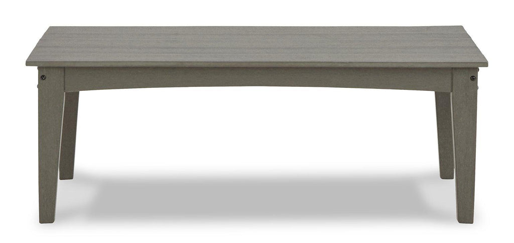 It’s the dawn of a new day for gray. Embrace the style trend with this outdoor set. Each piece is crafted of HDPE material, combining the exceptional durability and weather resistance you need with the ‚Äúwood look‚Äù you love. The coffee table and comfortably cushioned seats take alfresco living to a whole new level. A slatted table top infuses a plank-style, farmhouse-inspired touch and naturally sheds rainwater. Rest assured, the thick cushions on the sofa and loveseat are wrapped in Nuvella® high-performance fabric that’s fade-resistant, stain-resistant and a breeze to keep clean.